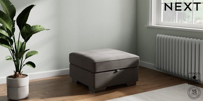7.2.10 Buy Stamford Buttoned Back Storage Footstool Fine Chenille Easy Clean Dark Smoke Grey Square Angle - Gunmetal from the Next UK online shop Click here to use our accessible website