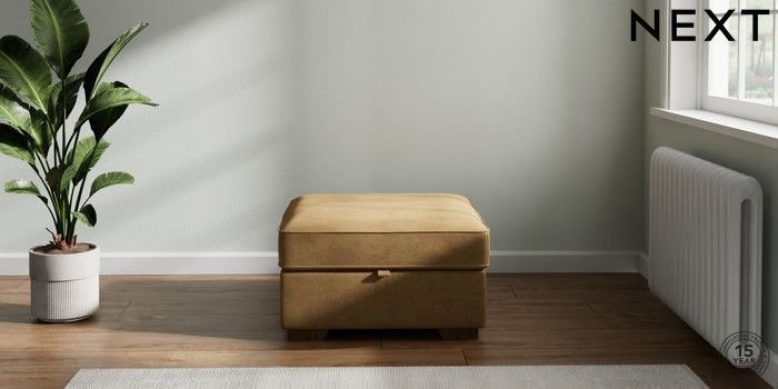 7.2.6 Buy Stamford Buttoned Back Storage Footstool Luxe Chenille Honey Yellow Square Angle - Mid from the Next UK online shop Click here to use our accessible website
