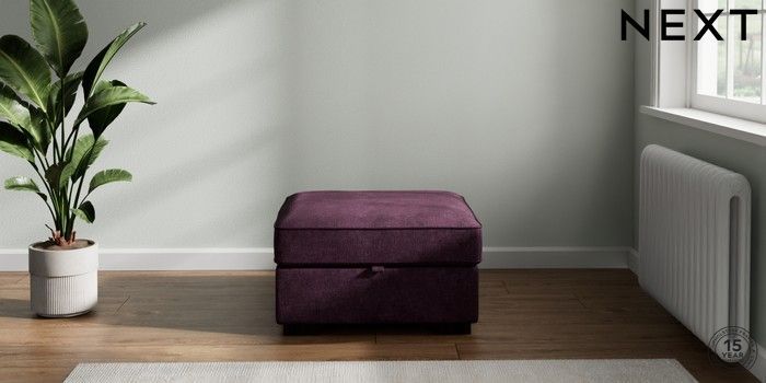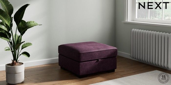 7.2.10 Buy Stamford Buttoned Back Storage Footstool Plush Chenille Dark Plum Purple Square Angle - Dark from the Next UK online shop Click here to use our accessible website