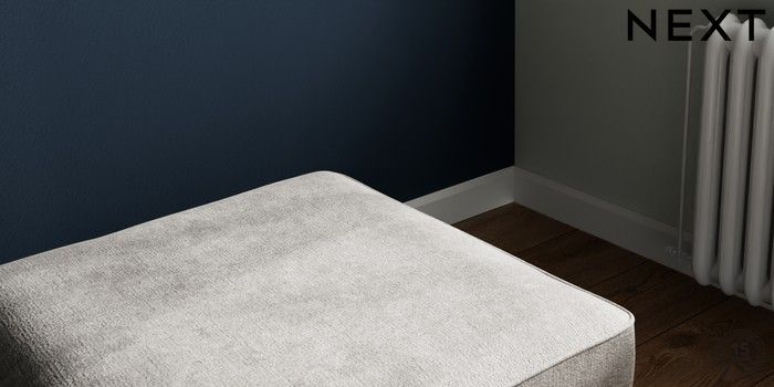 7.2.10 Buy Stamford Buttoned Back Storage Footstool Plush Chenille Light Grey Square Angle - Chrome Metal from the Next UK online shop Click here to use our accessible website