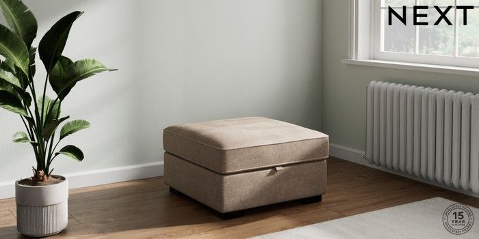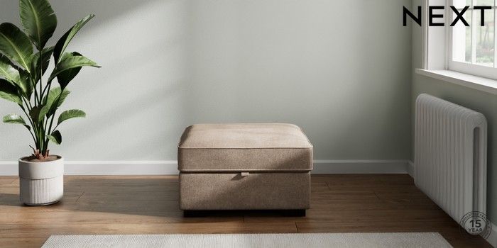 7.2.6 Buy Stamford Buttoned Back Storage Footstool Plush Chenille Mid Natural Square Angle - Dark from the Next UK online shop Click here to use our accessible website