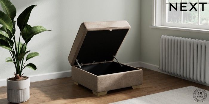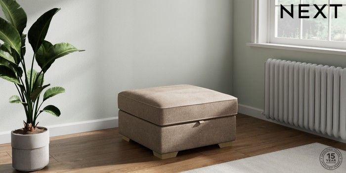 7.2.10 Buy Stamford Buttoned Back Storage Footstool Plush Chenille Mid Natural Square Angle - Light from the Next UK online shop Click here to use our accessible website