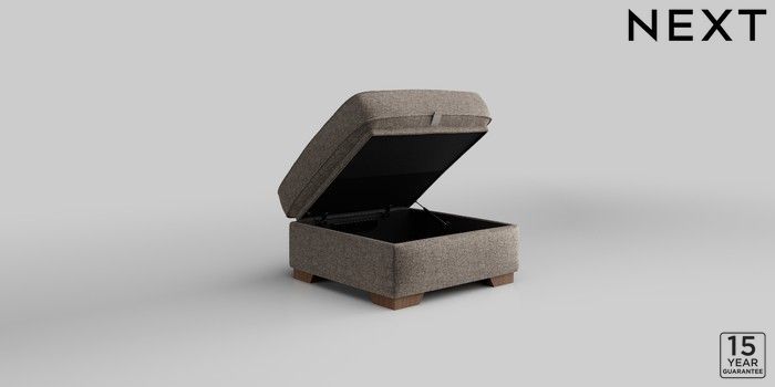 6.12.1 Buy Stamford Buttoned Back Storage Footstool Plush Chenille Mink Brown Square Angle - Chrome Metal from the Next UK online shop Click here to use our accessible website