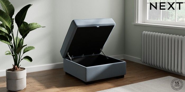 7.2.10 Buy Stamford Buttoned Back Storage Footstool Relaxed Linen Look Mid Blue Square Angle - Dark from the Next UK online shop Click here to use our accessible website