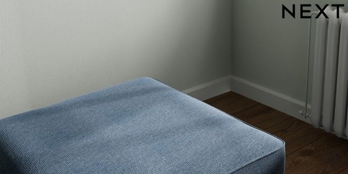 7.2.6 Buy Stamford Buttoned Back Storage Footstool Ripple Chenille Dark Blue Square Angle - Chrome Metal from the Next UK online shop Click here to use our accessible website