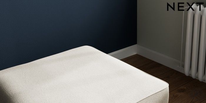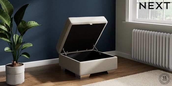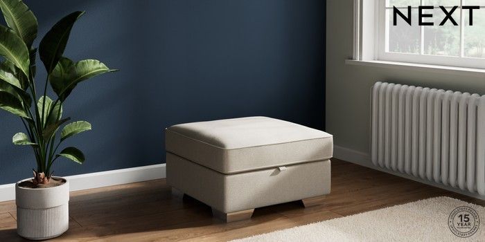 7.2.10 Buy Stamford Buttoned Back Storage Footstool Tweedy Chenille Oyster Square Angle - Chrome Metal from the Next UK online shop Click here to use our accessible website