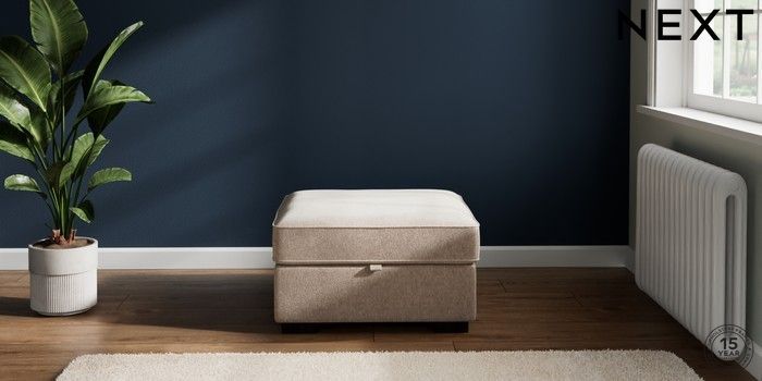 7.2.6 Buy Stamford Buttoned Back Storage Footstool Cotswold Chenille Light Natural Square Angle - Dark from the Next UK online shop Click here to use our accessible website