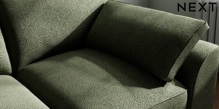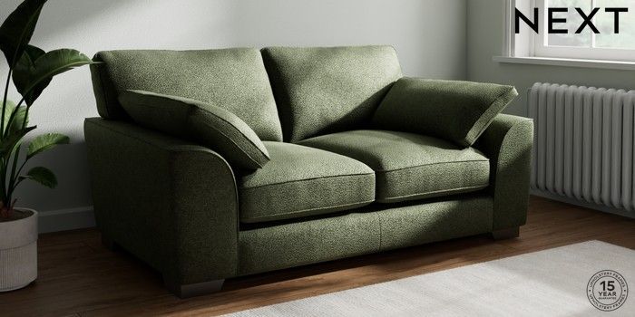 7.3.1 Buy Stamford Grand Relaxed Sit 2 Seater Sofa Boucle Chenille Dark Moss Green Large Square Angle - Gunmetal from the Next UK online shop Click here to use our accessible website