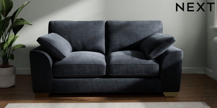 7.3.1 Buy Stamford Grand Relaxed Sit 2 Seater Sofa Boucle Chenille Dark Slate Blue Large Square Angle - Brushed Brass from the Next UK online shop Click here to use our accessible website