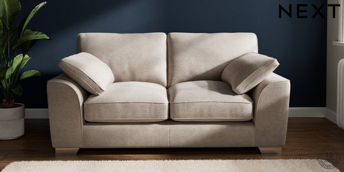 7.3.1 Buy Stamford Grand Relaxed Sit 2 Seater Sofa Boucle Chenille Light Natural Large Square Angle - Chrome Metal from the Next UK online shop Click here to use our accessible website