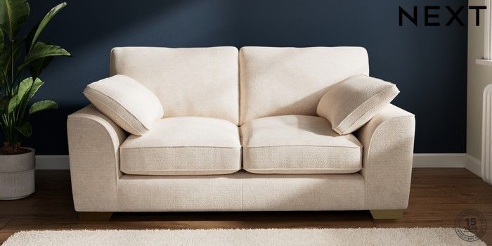7.3.1 Buy Stamford Grand Relaxed Sit 2 Seater Sofa Boucle Chenille Oyster Large Square Angle - Brushed Brass from the Next UK online shop Click here to use our accessible website