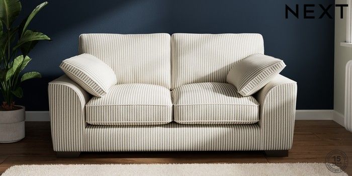 7.2.10 Buy Stamford Grand Relaxed Sit 2 Seater Sofa Chenille Stripe Moss Green Large Square Angle - Gunmetal from the Next UK online shop Click here to use our accessible website