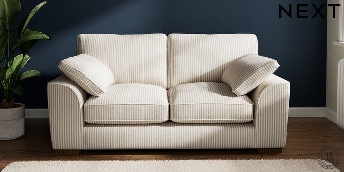 7.2.10 Buy Stamford Grand Relaxed Sit 2 Seater Sofa Chenille Stripe Natural Large Square Angle - Mid from the Next UK online shop Click here to use our accessible website