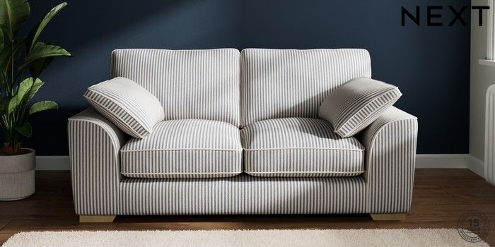 7.2.10 Buy Stamford Grand Relaxed Sit 2 Seater Sofa Chenille Stripe Slate Blue Large Square Angle - Light from the Next UK online shop Click here to use our accessible website