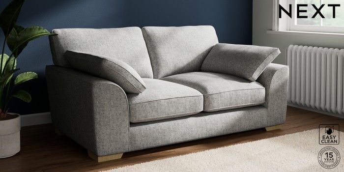 7.3.1 Buy Stamford Grand Relaxed Sit 2 Seater Sofa Chunky Boucle Easy Clean Light Grey Large Square Angle - Light from the Next UK online shop