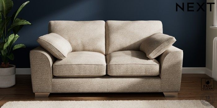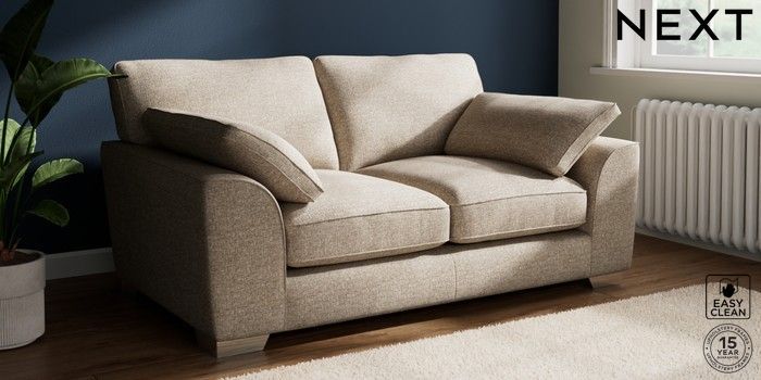 7.3.1 Buy Stamford Grand Relaxed Sit 2 Seater Sofa Chunky Boucle Easy Clean Mid Natural Large Square Angle - Chrome Metal from the Next UK online shop Click here to use our accessible website