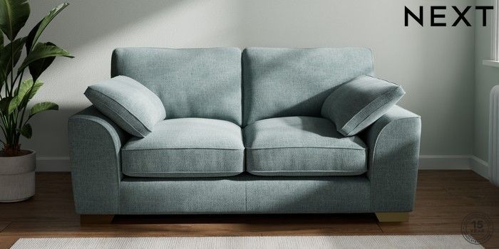7.3.1 Buy Stamford Grand Relaxed Sit 2 Seater Sofa Chunky Chenille Light Teal Green Large Square Angle - Brushed Brass from the Next UK online shop Click here to use our accessible website