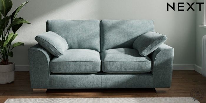 7.3.1 Buy Stamford Grand Relaxed Sit 2 Seater Sofa Chunky Chenille Light Teal Green Large Square Angle - Chrome Metal from the Next UK online shop Click here to use our accessible website