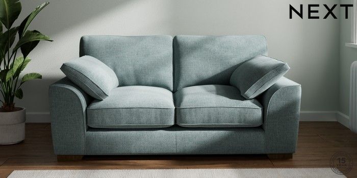 7.2.10 Buy Stamford Grand Relaxed Sit 2 Seater Sofa Chunky Chenille Light Teal Green Large Square Angle - Mid from the Next UK online shop Click here to use our accessible website