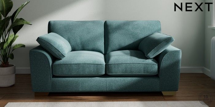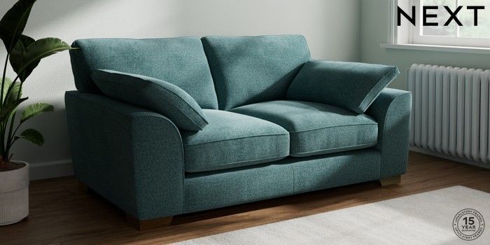 7.3.1 Buy Stamford Grand Relaxed Sit 2 Seater Sofa Chunky Chenille Mid Teal Green Large Square Angle - Brushed Brass from the Next UK online shop Click here to use our accessible website