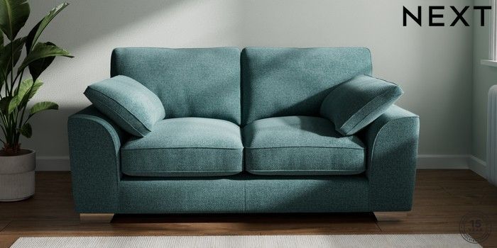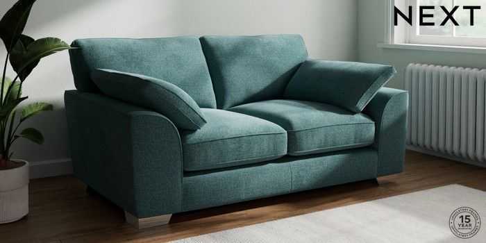 7.3.1 Buy Stamford Grand Relaxed Sit 2 Seater Sofa Chunky Chenille Mid Teal Green Large Square Angle - Chrome Metal from the Next UK online shop Click here to use our accessible website