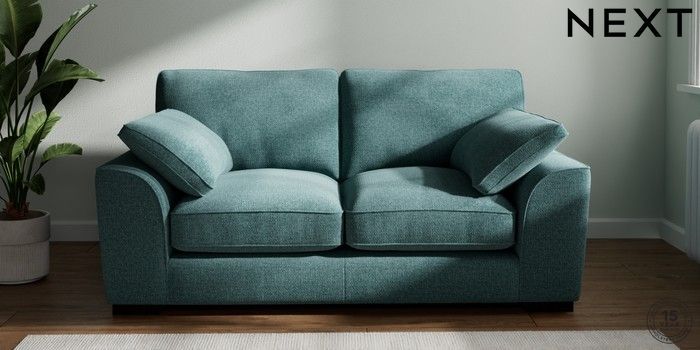 7.3.1 Buy Stamford Grand Relaxed Sit 2 Seater Sofa Chunky Chenille Mid Teal Green Large Square Angle - Dark from the Next UK online shop Click here to use our accessible website