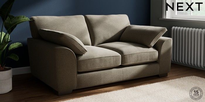 7.3.1 Buy Stamford Grand Relaxed Sit 2 Seater Sofa Chunky Marl Light Olive Green Large Square Angle - Gunmetal from the Next UK online shop Click here to use our accessible website