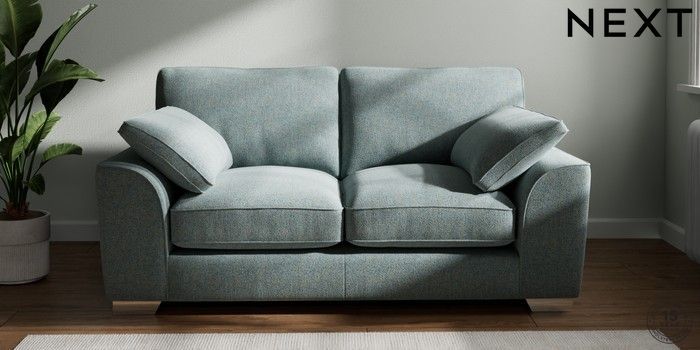 7.3.1 Buy Stamford Grand Relaxed Sit 2 Seater Sofa Chunky Marl Mid Blue Large Square Angle - Chrome Metal from the Next UK online shop Click here to use our accessible website