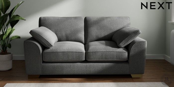 7.2.10 Buy Stamford Grand Relaxed Sit 2 Seater Sofa Chunky Texture Dark Grey Large Square Angle - Brushed Brass from the Next UK online shop Click here to use our accessible website