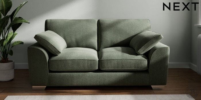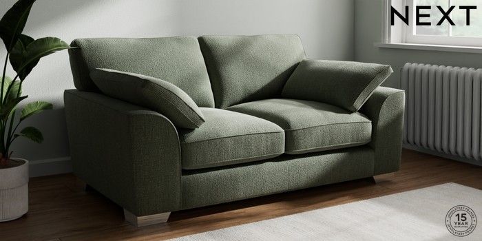 7.3.1 Buy Stamford Grand Relaxed Sit 2 Seater Sofa Chunky Texture Mid Forest Green Large Square Angle - Chrome Metal from the Next UK online shop Click here to use our accessible website