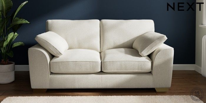 7.2.10 Buy Stamford Grand Relaxed Sit 2 Seater Sofa Chunky Texture Oyster Large Square Angle - Brushed Brass from the Next UK online shop Click here to use our accessible website