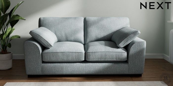 7.2.10 Buy Stamford Grand Relaxed Sit 2 Seater Sofa Chunky Weave Mid Blue Large Square Angle - Dark from the Next UK online shop Click here to use our accessible website