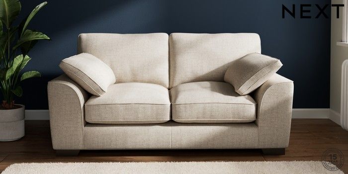 7.3.1 Buy Stamford Grand Relaxed Sit 2 Seater Sofa Chunky Weave Mid Natural Large Square Angle - Gunmetal from the Next UK online shop Click here to use our accessible website