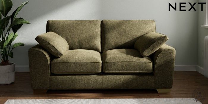 7.3.1 Buy Stamford Grand Relaxed Sit 2 Seater Sofa Cotswold Chenille Dark Green Large Square Angle - Brushed Brass from the Next UK online shop Click here to use our accessible website