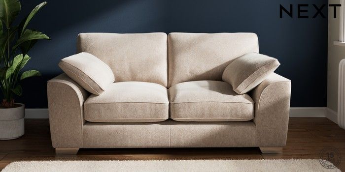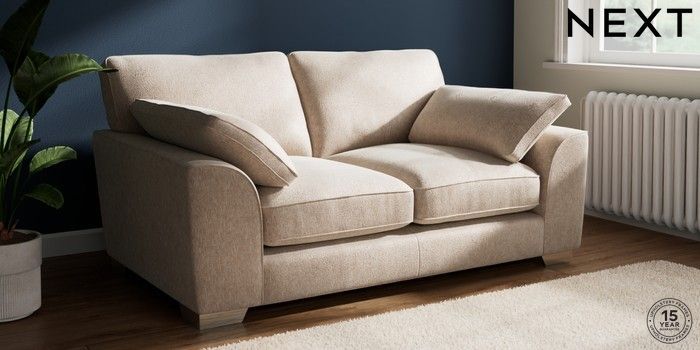 7.3.1 Buy Stamford Grand Relaxed Sit 2 Seater Sofa Cotswold Chenille Light Natural Large Square Angle - Chrome Metal from the Next UK online shop Click here to use our accessible website