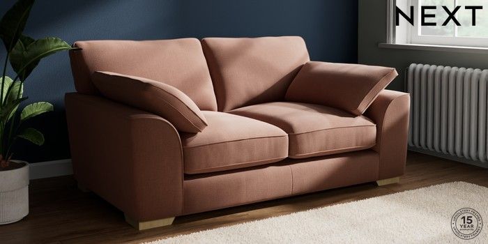 7.3.1 Buy Stamford Grand Relaxed Sit 2 Seater Sofa Relaxed Linen Look Light Rust Brown Large Square Angle - Light from the Next UK online shop Click here to use our accessible website