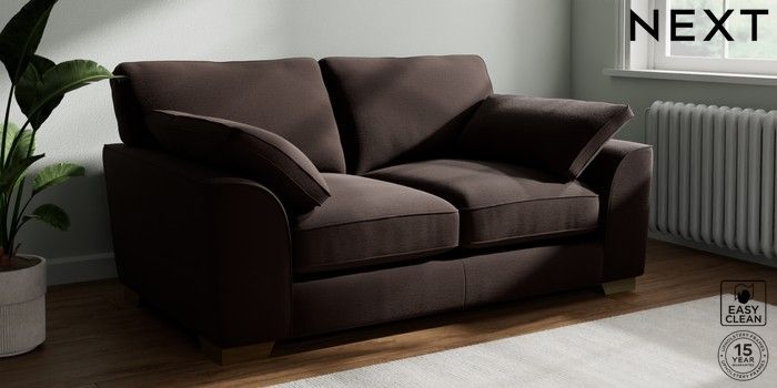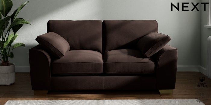 7.3.1 Buy Stamford Grand Relaxed Sit 2 Seater Sofa Fine Chenille Easy Clean Chocolate Brown Large Square Angle - Brushed Brass from the Next UK online shop Click here to use our accessible website