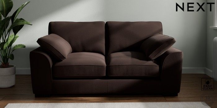 7.3.1 Buy Stamford Grand Relaxed Sit 2 Seater Sofa Fine Chenille Easy Clean Chocolate Brown Large Square Angle - Dark from the Next UK online shop Click here to use our accessible website