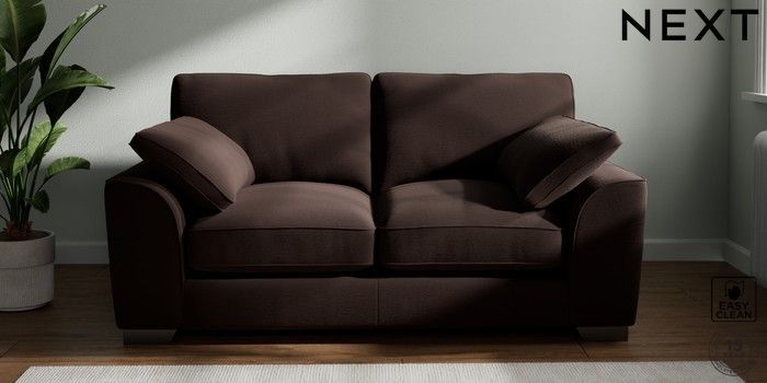 7.3.1 Buy Stamford Grand Relaxed Sit 2 Seater Sofa Fine Chenille Easy Clean Chocolate Brown Large Square Angle - Gunmetal from the Next UK online shop Click here to use our accessible website