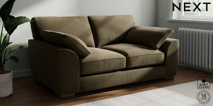 7.3.1 Buy Stamford Grand Relaxed Sit 2 Seater Sofa Fine Chenille Easy Clean Dark Moss Green Large Square Angle - Gunmetal from the Next UK online shop Click here to use our accessible website