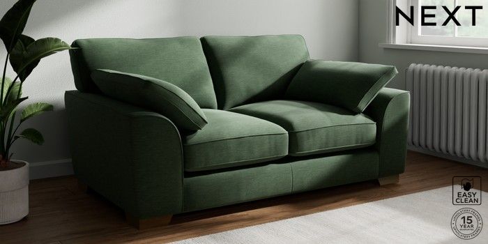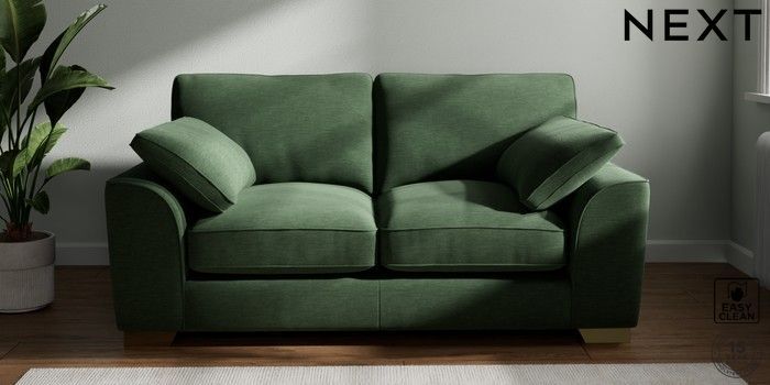 7.3.1 Buy Stamford Grand Relaxed Sit 2 Seater Sofa Fine Chenille Easy Clean Mid Khaki Green Large Square Angle - Brushed Brass from the Next UK online shop Click here to use our accessible website