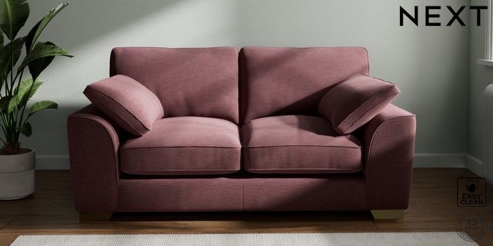 7.3.1 Buy Stamford Grand Relaxed Sit 2 Seater Sofa Fine Chenille Easy Clean Mid Mulberry Purple Large Square Angle - Brushed Brass from the Next UK online shop Click here to use our accessible website