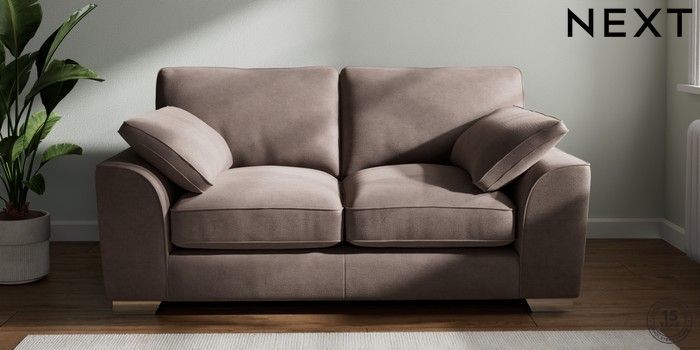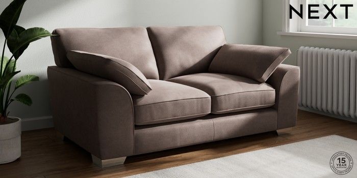 7.3.1 Buy Stamford Grand Relaxed Sit 2 Seater Sofa Luxe Chenille Mink Brown Large Square Angle - Chrome Metal from the Next UK online shop Click here to use our accessible website