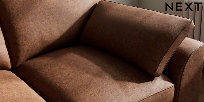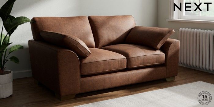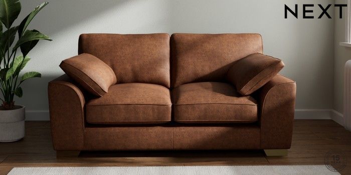 7.3.1 Buy Stamford Grand Relaxed Sit 2 Seater Sofa Monza Faux Leather Easy Clean Chestnut Brown Large Square Angle - Brushed Brass from the Next UK online shop Click here to use our accessible website