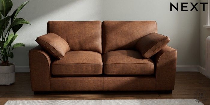 7.3.1 Buy Stamford Grand Relaxed Sit 2 Seater Sofa Monza Faux Leather Easy Clean Chestnut Brown Large Square Angle - Dark from the Next UK online shop Click here to use our accessible website