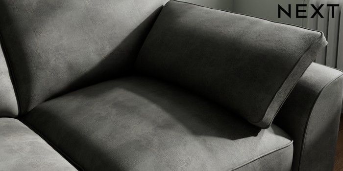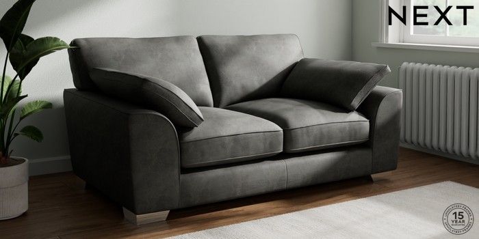 7.3.1 Buy Stamford Grand Relaxed Sit 2 Seater Sofa Monza Faux Leather Easy Clean Dark Grey Large Square Angle - Chrome Metal from the Next UK online shop Click here to use our accessible website