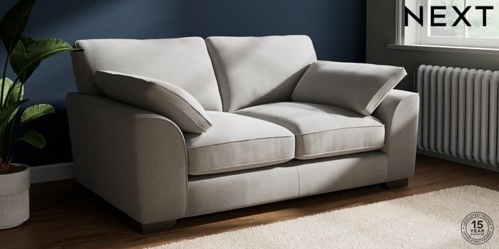 7.3.1 Buy Stamford Grand Relaxed Sit 2 Seater Sofa Natural Mix Light Grey Large Square Angle - Gunmetal from the Next UK online shop Click here to use our accessible website