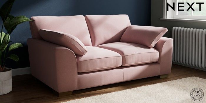 7.3.1 Buy Stamford Grand Relaxed Sit 2 Seater Sofa Natural Mix Light Rose Pink Large Square Angle - Brushed Brass from the Next UK online shop Click here to use our accessible website