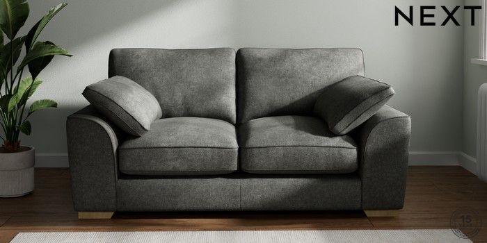 7.2.10 Buy Stamford Grand Relaxed Sit 2 Seater Sofa Plush Chenille Dark Grey Large Square Angle - Light from the Next UK online shop Click here to use our accessible website