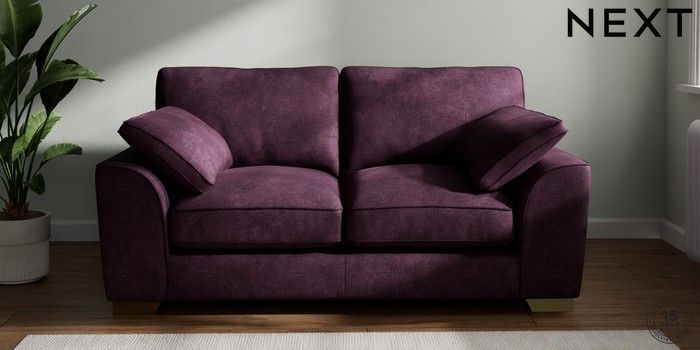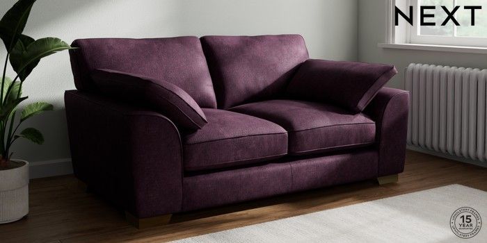7.3.1 Buy Stamford Grand Relaxed Sit 2 Seater Sofa Plush Chenille Dark Plum Purple Large Square Angle - Brushed Brass from the Next UK online shop Click here to use our accessible website